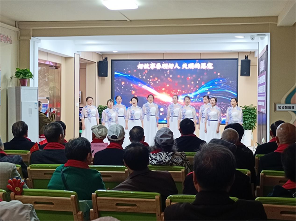 演出最后,伴随着熟悉而激昂的旋律《没有共产党就没有新中国》响起,全场人员起身,共同引吭高歌。铿锵有力的合唱声回荡在整个会场,将现场气氛推向高潮,也为本次重阳节庆祝活动画上了圆满而充满力量的句号。 文艺演出结束后,社区还贴心组织了公益义诊活动,邀请社区卫生服务站的医务人员为老年朋友们提供量血压、健康咨询等服务,耐心解答老人们关于常见病、慢性病的预防与保健问题,将健康关怀送到老人身边。