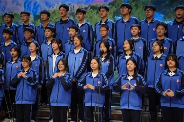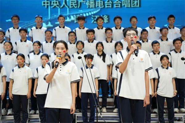高一合唱团以一曲《红旗飘飘》 将现场氛围推向高潮 跃动的红色旋律辉映新时代荣光 抒发对祖国最深沉的爱