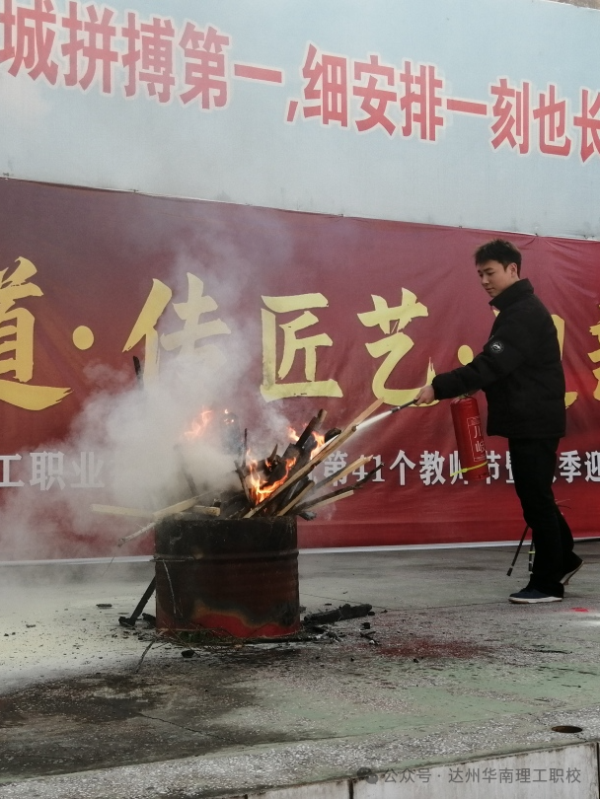 火灾疏散演练——防范未“燃”,有序撤离 防震演练结束后,火灾疏散演练紧接着拉开帷幕。演练模拟教学楼某处发生“火情”,楼道内浓烟弥漫。 · 科学应对: 师生们迅速反应,用湿毛巾或衣袖捂住口鼻,压低身体,弯腰低姿,沿着墙壁标识的安全出口方向迅速撤离。 · 通力协作: 各楼层、各关键点的安全引导员坚守岗位,有效指挥,防止了慌乱和拥挤,确保了疏散过程的绝对安全。 · 技能普及: 全体师生撤离至安全地带后,现场指挥员还就干粉灭火器的正确使用方法进行了讲解与示范,让抽象的安全知识变成了具体的实战技能。