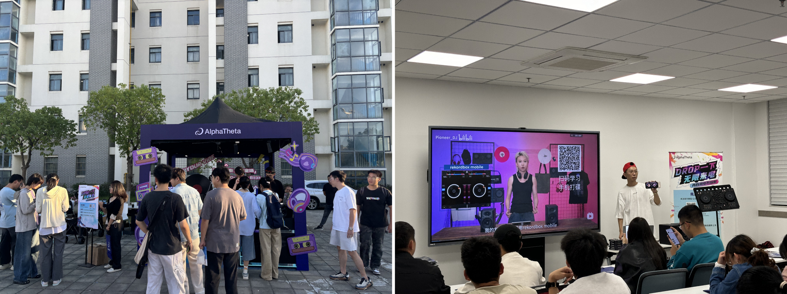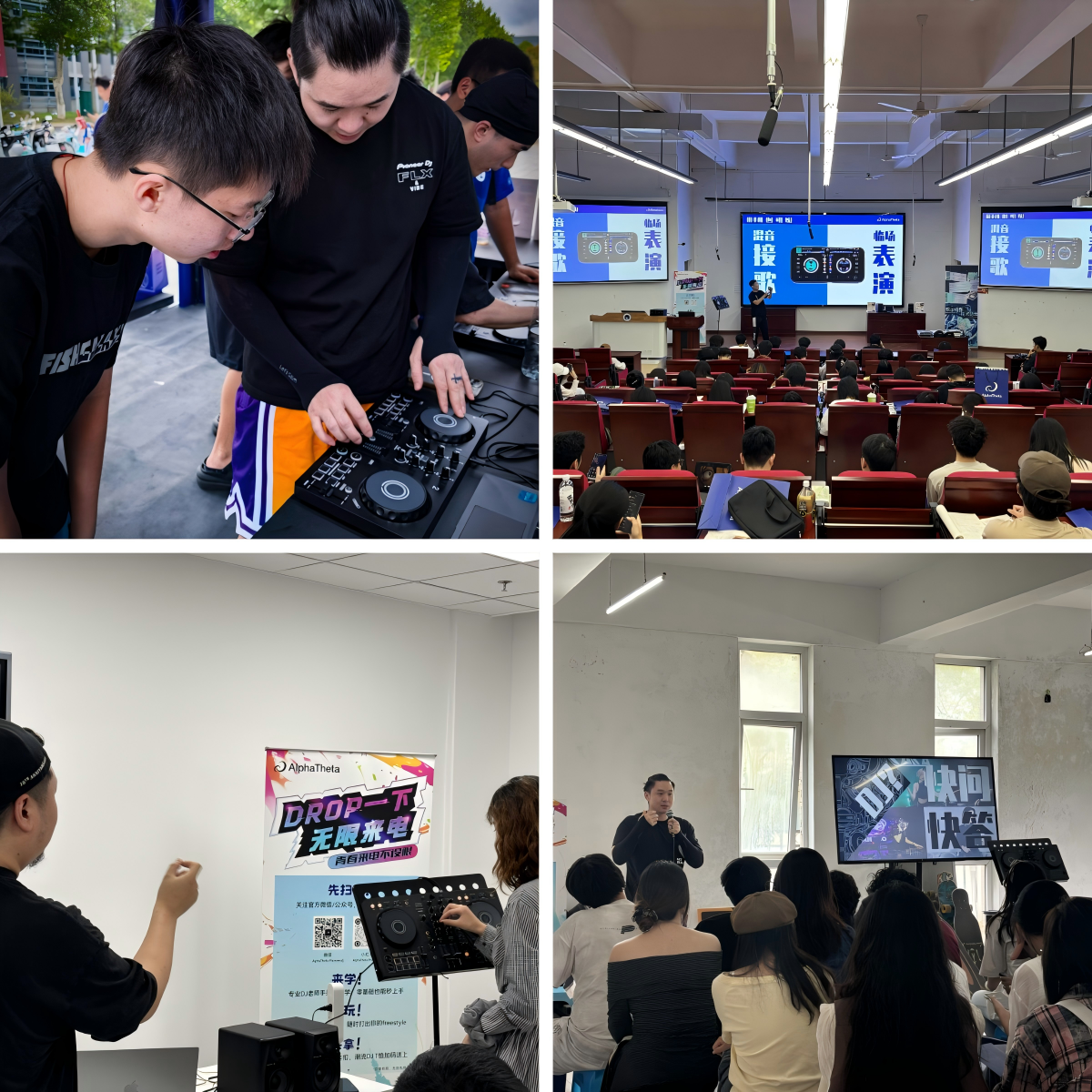 2025年9月至10月,AlphaTheta DJ携手全国各地高校,成功举办了为期两个月的校园推广活动,覆盖了上海、南京、成都、武汉、深圳和 广州六大城市。此次活动共计在12所高校举办,其中包括3场DJ快闪体验活动和7场DJ混音教学讲堂,吸引了过千名学生参与。