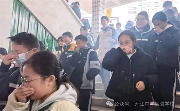 警报响起后,各班级师生在班主任与楼层引导员的指挥下,迅速用湿毛巾或者衣物捂住口鼻,弯腰低姿沿预定路线快速撤离,全程秩序井然,无拥挤、推搡情况发生,很快全员集结至操场安全区域。