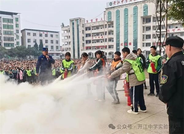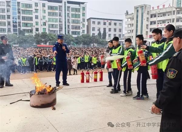 理论实操相结合 筑牢校园防火墙—— 开江中学实验学校开展消防应急演练12月16日上午10时,急促的消防警报声划破开江中学实验学校的宁静,全校师生消防应急演练正式启动。学校安办主任吴永俊全程统筹,消防救援大队邓流威班长现场指导,通过"理论讲解+实操演练"的模式,为师生上了一堂生动的消防安全必修课。