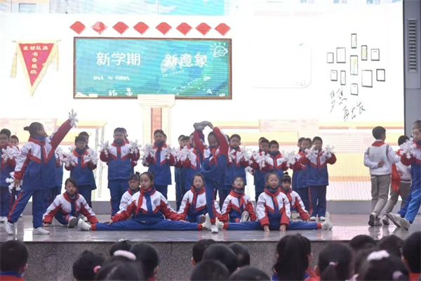 随后,王思贻、杨子舾、徐诗雅、朱明宏四位同学带来国旗下讲话,围绕“文明记心间 快乐过冬天”主题,分享冬季校园文明规范、日常安全防护、健康生活习惯等内容,倡导大家将文明素养融入日常言行,时刻绷紧安全弦,守护自身健康的同时,共建文明和谐的校园环境,开开心心度过寒冷冬日。 接着,五(17)中队献上精彩的风采展示节目《快乐崇拜》。队员们精神饱满、活力四射,以动感十足的舞姿搭配欢快昂扬的旋律,传递积极乐观的生活态度与满满的青春活力,充分展现五(17)中队的凝聚力与向心力。