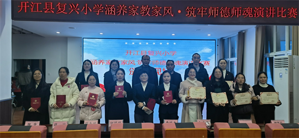 开江县复兴小学成功举办“涵养家教家风·筑牢师德师魂”演讲比赛为强化教师队伍建设,弘扬高尚师德、涵养优良家风,12月15日下午,开江县复兴小学在学校会议室隆重举办“涵养家教家风·筑牢师德师魂”主题演讲比赛,全校教师积极参与,活动圆满落幕。