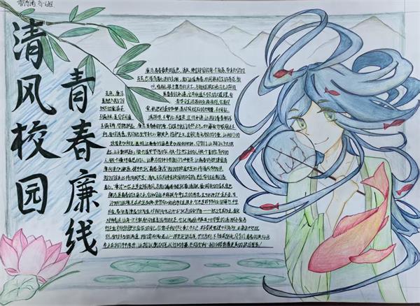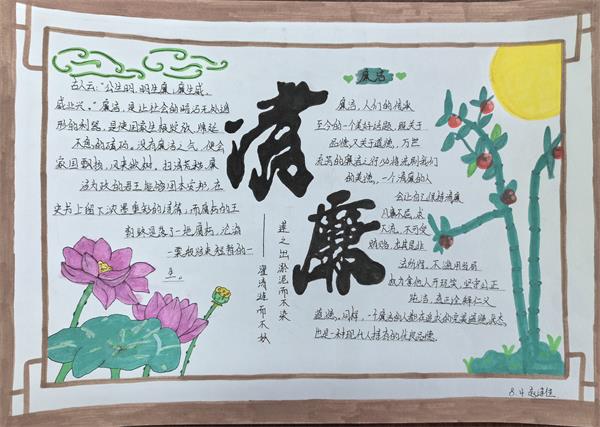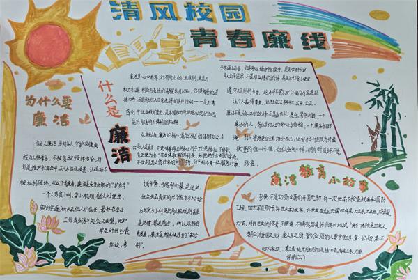 此次手抄报比赛不仅是一次生动的艺术实践,更是一堂深刻的廉洁教育课。希望全体师生以此次活动为契机,继续加强学习廉洁文化,自觉传承廉洁美德,将崇廉尚洁的价值理念内化于心、外化于行,共同营造校园风清气正、积极向上的育人氛围,让廉洁之花在校园常开不败,让青春之光在坚守初心、践行美德中更加璀璨夺目!