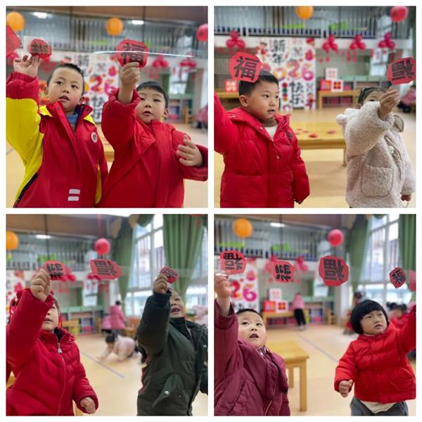 园所里大红灯笼高高挂起,孩子们手绘的福字错落点缀,长长的走廊上张贴着孩子们的各种剪纸,处处洋溢着浓浓的新年气息。