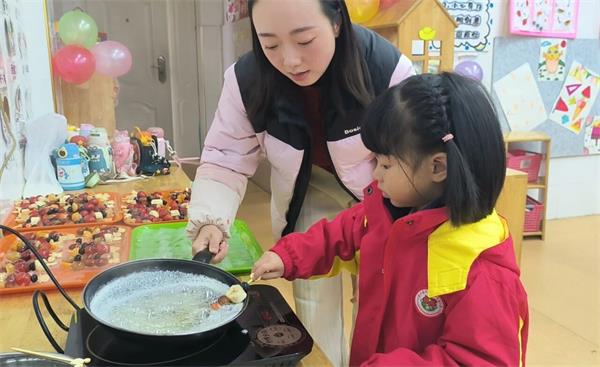 奇思妙想意 携手迎新年 活动以“传统文化+趣味互动”为核心,各班特色环节各显精彩:非遗班里,孩子化身“小传承人”,专注拓印福字、参与投壶,稚嫩指尖让民俗韵味悄然呈现;美食班里,汤圆冒起热气、糖葫芦裹满糖霜,小朋友们协作择菜、摆盘,一口甜香里漾开团圆暖意;闯关游戏区,“金蛇送福套圈”、“蒙眼摸福”等亲子游戏活动引来阵阵欢呼。活动结束后,孩子们抱着丰厚奖品,小手里的“收获”越攒越满。 托班《柿柿如意》