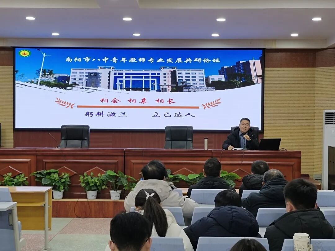 南阳市第八中学校举办青年教师专业发展共研论坛草木蔓发,春山可望;杏坛齐聚,共话成长。近日,南阳市第八中学校成功举办以“深耕教坛,聚力成长”为主题的青年教师专业发展共研论坛。校领导、学科主任出席,近五年入职的青年教师齐聚一堂,共话专业成长之路。 本次活动中,9位青年教师结合学科教学与班级管理,分享了从“站稳讲台”到“点亮讲台”的成长历程,内容涵盖文本解读、情境教学、师生关系、语言艺术等多方面,展现了扎实的教学实践与持续的学习热情。