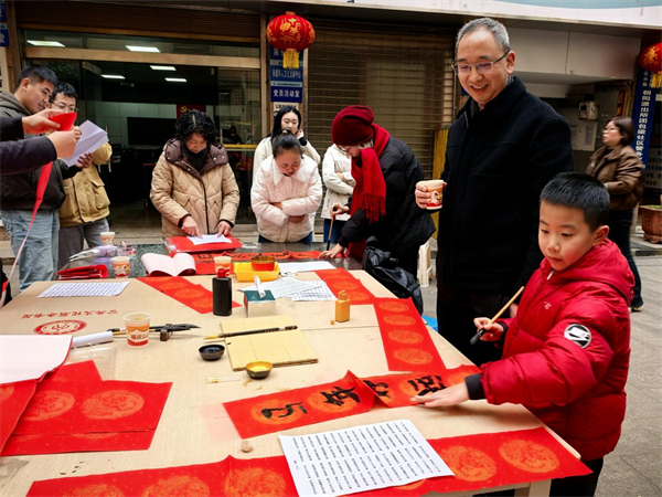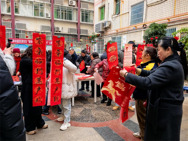 翰墨飘香传祝福 文化浸润迎新春——达州开放大学与团包梁社区共同举办迎春文化活动马年新春渐近,年味十足。2月10日,达州开放大学(达州社区大学 国家老年大学(四川)达州分校)与朝阳街道团包梁社区共同举办了2026年“迎春送福 社区邀您来打卡”主题活动,吸引众多社区居民踊跃参与。 活动在团包梁社区安置房大院举行,现场人潮涌动、热闹非凡。处于C位的墨宝送福区,是最有人气的打卡点。达州开放大学特别安排付国、肖定元等三位书法老师现场挥毫泼墨,为居民免费书写定制春联和福字,将新春的美好祝福送到群众手中,让传统年味在笔墨书香中传递蔓延。老师们凝神运笔间,一副副笔力遒劲的