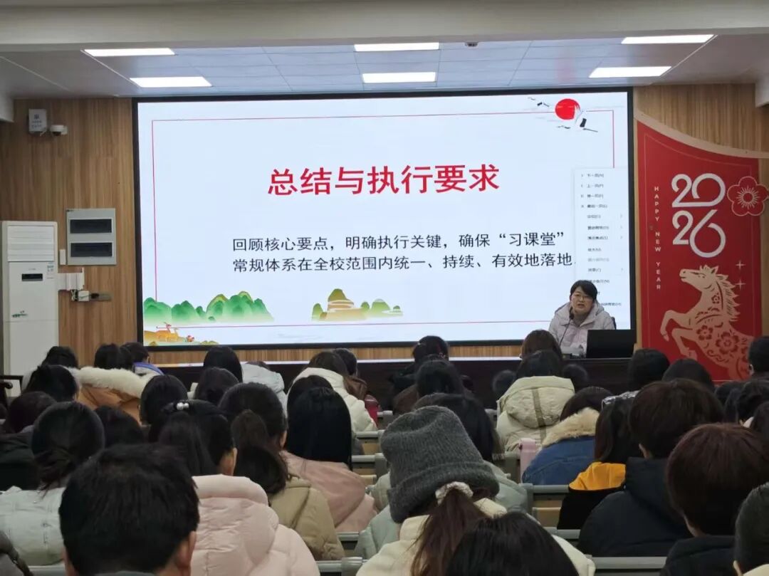 深学细悟促落实 以规提质培育核心素养 此次校本课堂常规专题培训,让全校语数教师统一了教学思想,明确了课堂教学的标准化要求,为后续校本课堂常规的全面落地奠定了坚实基础。参训教师纷纷表示,将把培训所学快速运用到日常课堂教学中,严格落实各项常规要求,让口令落地、习惯生根,让课堂读、写、练环节更高效,引导学生在规范的课堂氛围中养成专注、自律的良好学习习惯。 培训中,教科室顾主任、顾小丽小学语文名师工作室主持人顾小丽老师作专题讲话,强调抓实课堂常规是提升教学效率、培育学生习惯的关键,要求全体教师以良好精神风貌落实常规要求,做到课堂专注、以身作则,全力备战校内课堂常规展演,切实将培训所学转化为教学实效。
