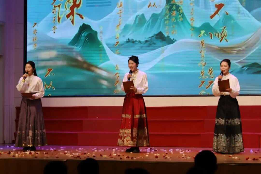 《读中国》《月光下的中国》,老师们以饱满的热情、铿锵的语调,诉说着对祖国大好河山的热爱;《不朽》缅怀革命先烈,致敬不朽精神;《沁园春·雪》的豪迈咏诵,将对祖国的深情与赞美抒发得酣畅淋漓,台下掌声阵阵,共鸣声声。