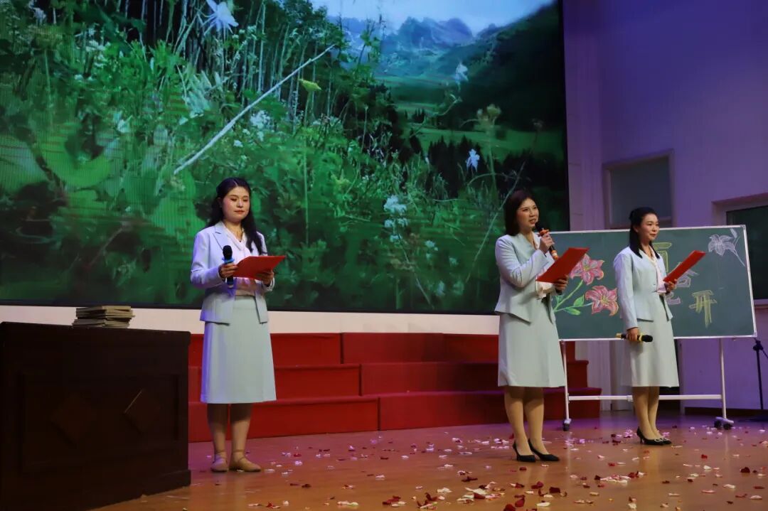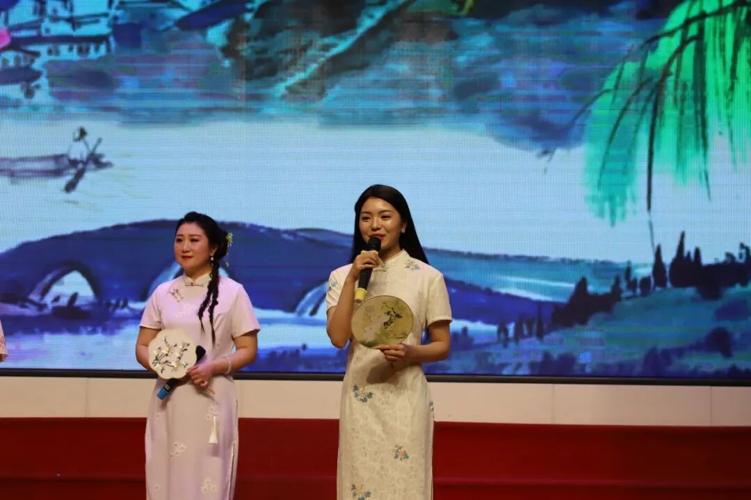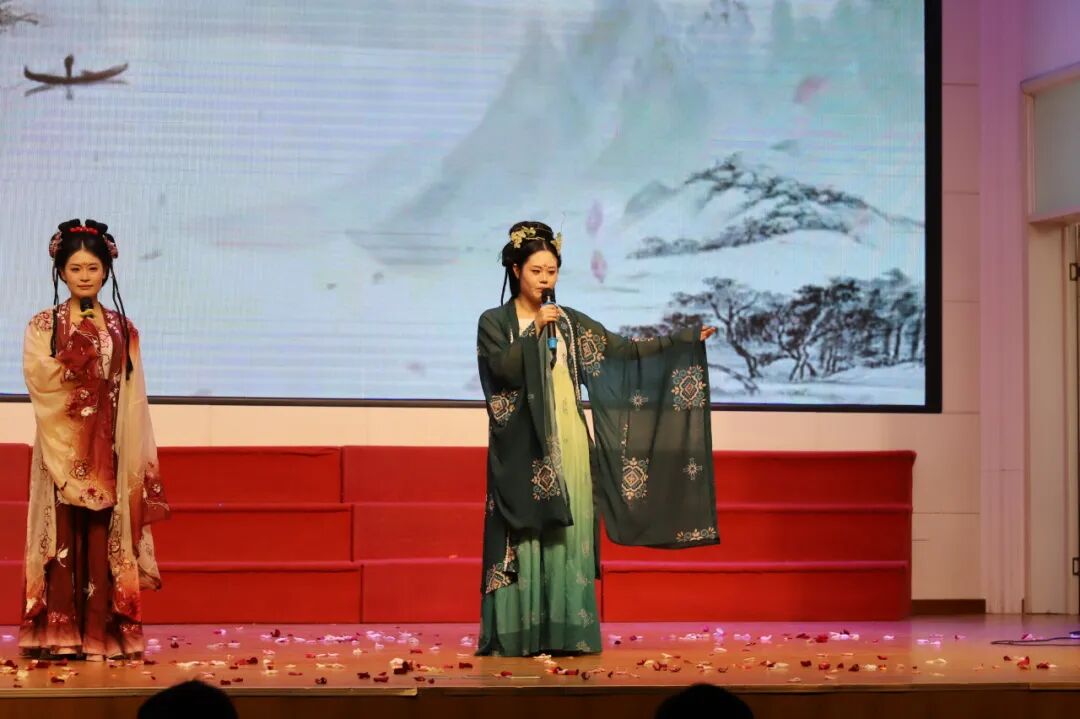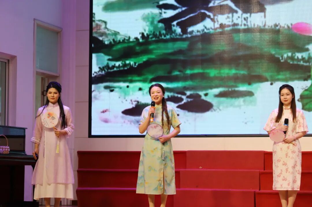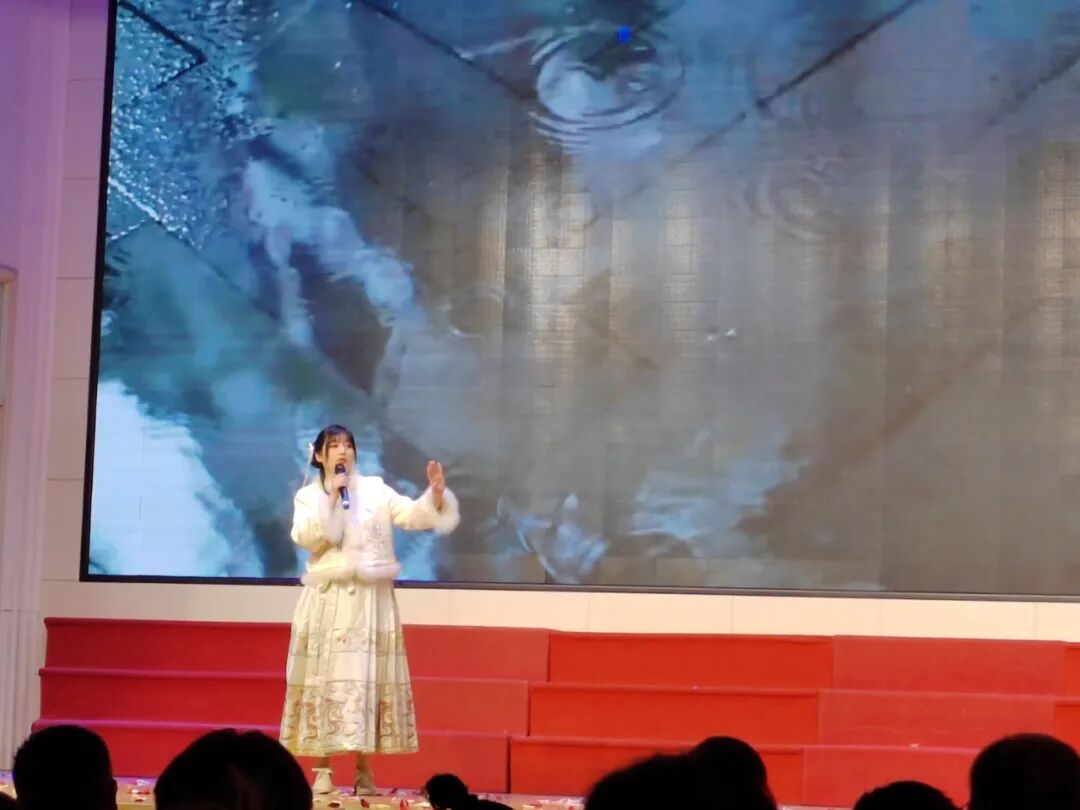 当悠扬的音乐响起,《春》《春天,遂想起》等作品轮番登台,老师们用温柔又灵动的声音,勾勒出春日万物复苏、生机盎然的美好画卷,让现场仿佛沉浸在春风拂面、繁花盛开的诗意春光里。《春夜喜雨》的经典吟诵,和诗以歌,更将春日的温婉与灵动演绎得淋漓尽致。