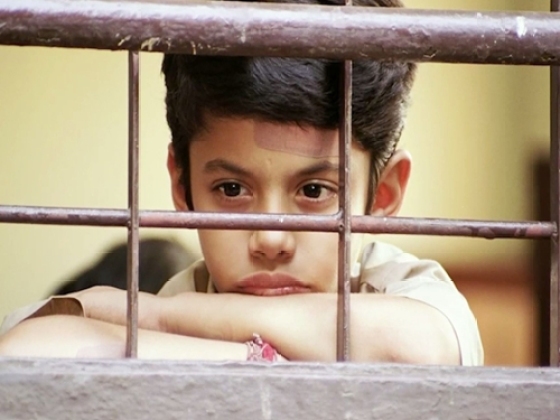 《地球上的星星》这部电影里讲述的是一个八岁男孩伊桑摆脱孤独和偏见赢得掌声的过程。他是一个与众不同的孩子,有着奇奇怪怪的想法,看到的字母就像会跳舞的音符,有着阅读障碍,在学校里他受尽老师的责罚和同学们的嘲笑,在家里父亲对他进行打骂,校长把他赶出了学校,最终父母把他送到了寄宿学校。在寄宿学校里,伊桑没有朋友,也远离父母,那里只有冰冷包围着他,他非常恐惧,也越来越孤独。伊桑渐渐的不再与任何人交流,始终是一个人默默地坐在自己的座位上。直到有一天,新来了一位名叫尼克的美术老师,发现了他的与众不同和天才的绘