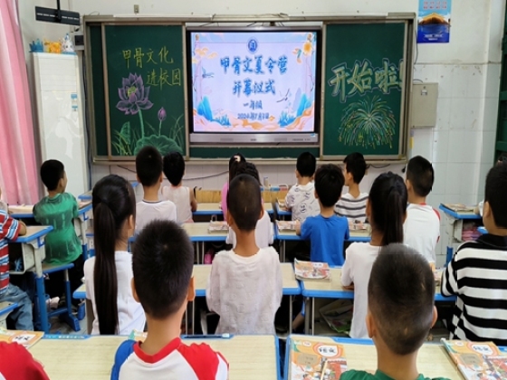 七月的夏风裹挟着高涨的热情,七月的南小充盈着满满的活力,七月的我们相约南小多彩甲骨文夏令营。开营仪式2024年7月3日,备受期待的安阳市南关小学一年级甲骨文夏令营活动正式开始啦!早上九点,伴随着庄严的国歌声开营仪式正式开始。 首先,董晨毅校长致夏令营开营仪式开幕词。他热烈欢迎南关小学一年级的队员们参加本次夏令营。董校长指出:甲骨文是我们的瑰宝,我们南关小学是甲骨文特色学校,这次甲骨文夏令营对你们来说是一次难得深耕甲骨文的机会,学习甲骨文是学习中国传统文化的一扇窗户。希望通过这次寓教于乐的夏令营