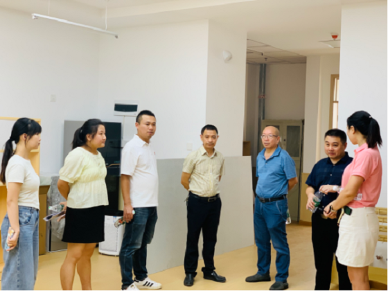 走过了盛夏的蓬勃,迎来了初秋的绚丽。用心做教育,用爱筑未来,迎检是常态,做好工作是常规。一次检查,一次提升,一次督导,一次成长。 内江市东兴区外国语小学校党总支书记吴德斌,党总支副书记、校长唐斌,副校长程萍到本校附属幼儿园视察开园情况。在杨红梅园长的引领下,领导们参观了该园安保室、保健室、厨房、教室、户外游戏等场所,同时听取了杨红梅园长对开园前期工作情况的汇报。吴德斌书记对开园整体筹备工作给予充分肯定,并强调在今后的工作中要再接再厉、细化管理、提升内涵。注重校园安全和教育质量,加强师资队伍建设,